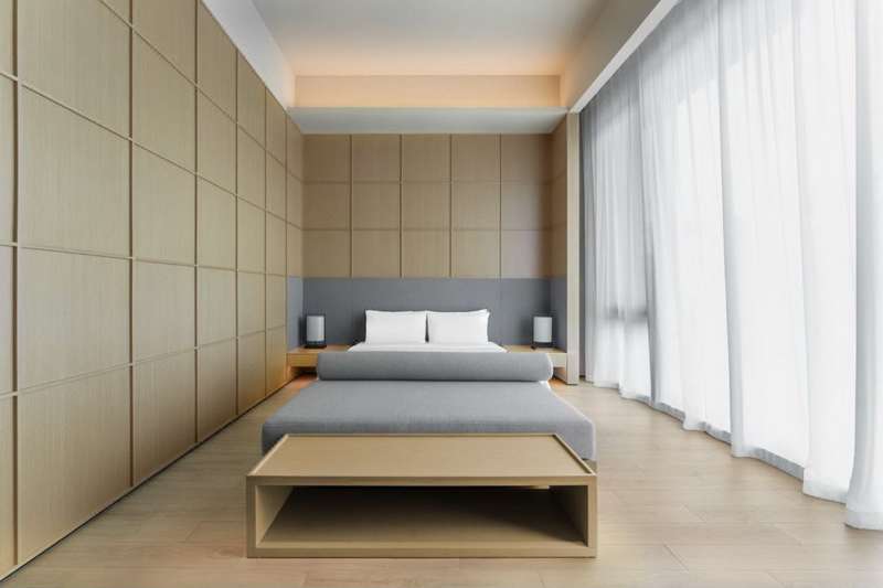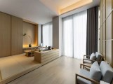 設(shè)計(jì)事務(wù)所鄭東賢主持設(shè)計(jì),房型包含大床、雙床、套房。酒店每間客房均設(shè)有獨(dú)立泡池,提供充滿儀式感的沐浴體驗(yàn),希望通過自然療愈的方式,讓身體與精神煥發(fā)活力。酒店外部配套有